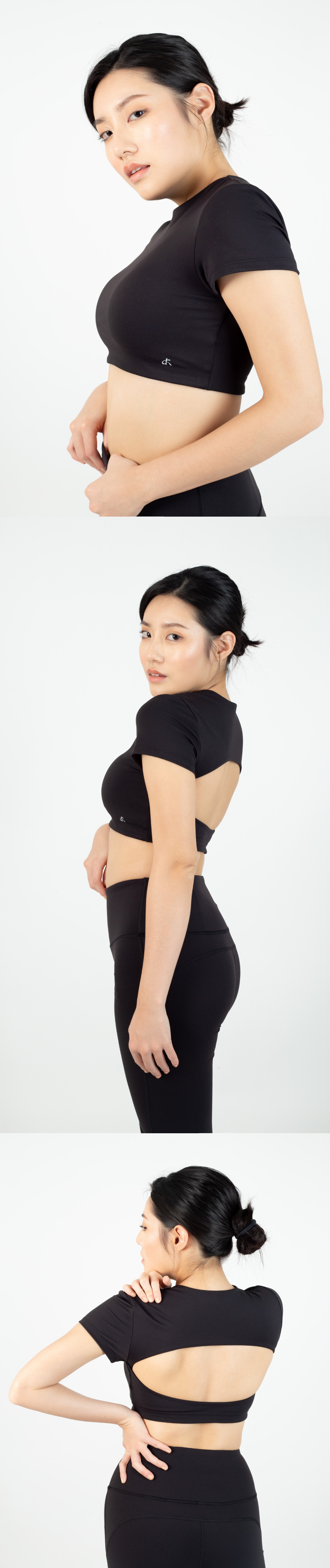 正面採用經典圓領設計,搭配俐落的短版剪裁,輕鬆拉高腰線,展現完美身形比例